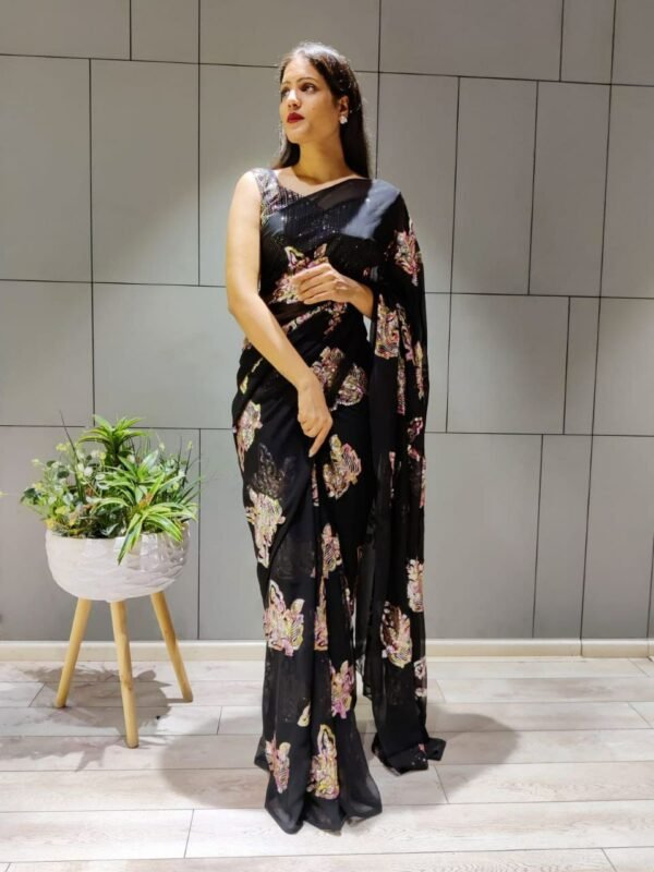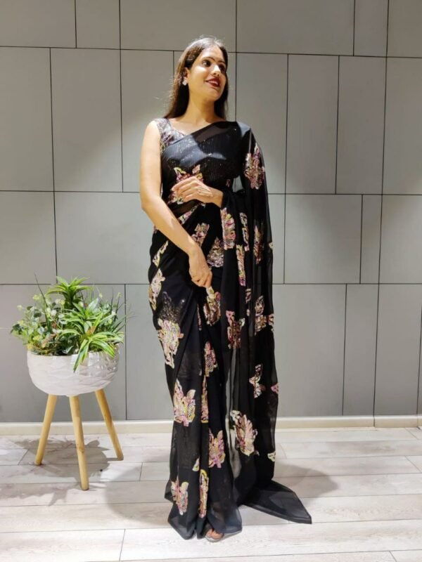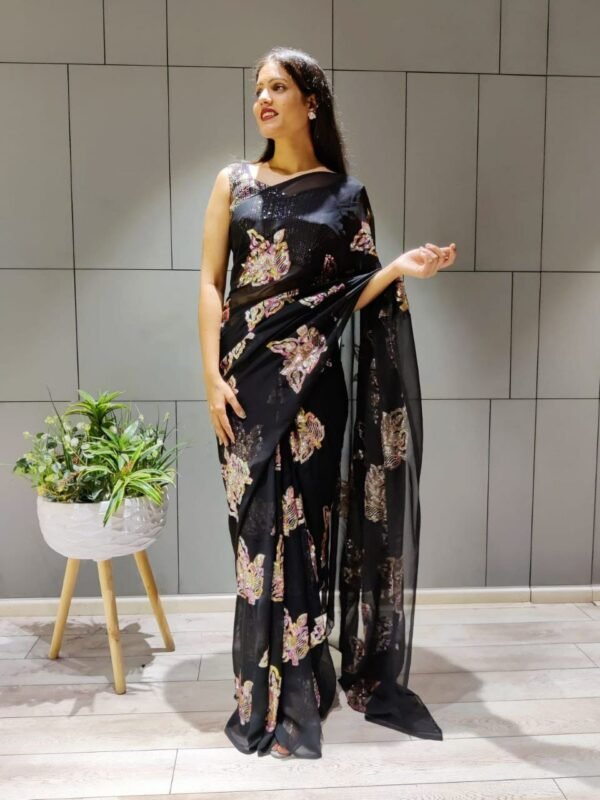 Pure Chanderi Hand Block Ajrakh Saree with delicate Katha embroidery, subtle sequin highlights, tassel pallu, and a matching Chanderi blouse — a timeless celebration of heritage and elegance.
